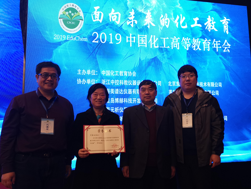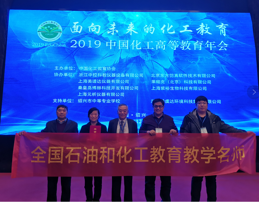 2019年中国化工学会开展了“全国石油和化工学者教学名师和优秀教学团队”的认定工作,经院校推荐,中国化工教育协会高校工作委员会、职业技术教育工作委员会初审,专家委员会评审以及公示等程序,产生“全国石油和化工公司产品名师”146名(本科院校54名、职业院校92名),“全国石油和化工教育优秀教学团队”100个(本科院校42个,职业院校48个),公司于鲁汕老师师被评为“全国石油和化工公司产品名师”,年会举行了颁奖仪式。仪式结束后公司教师与郝长江会长合影留念。