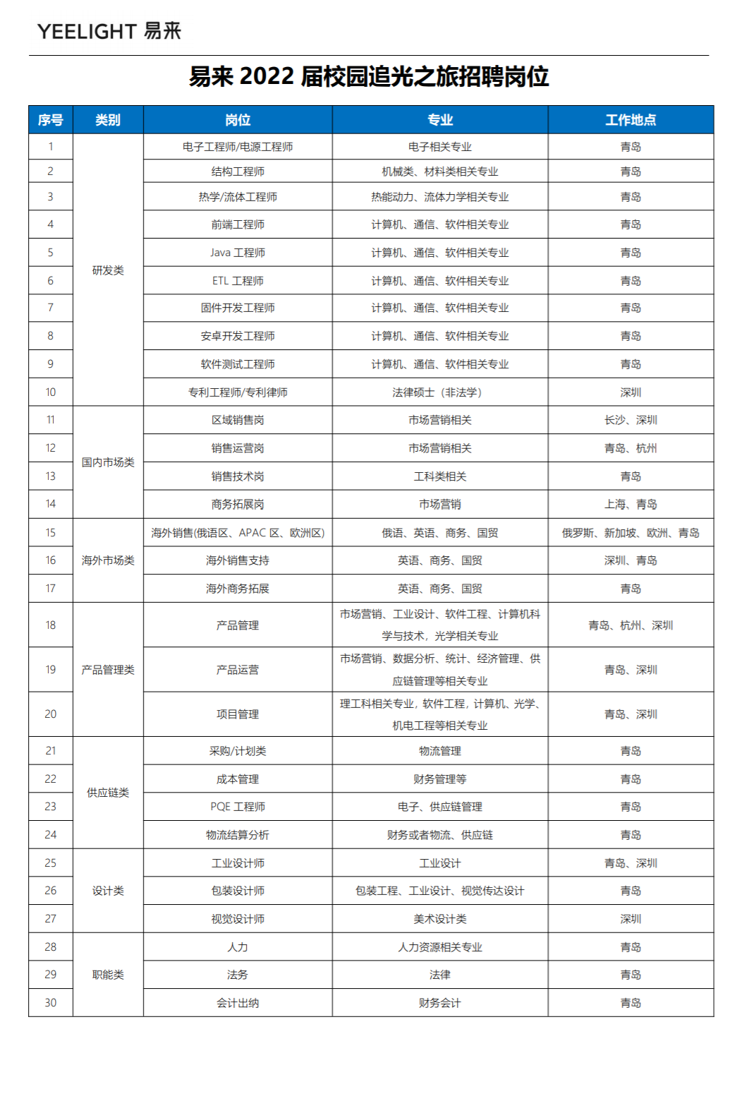 青岛、北京、上海、深圳、杭州
