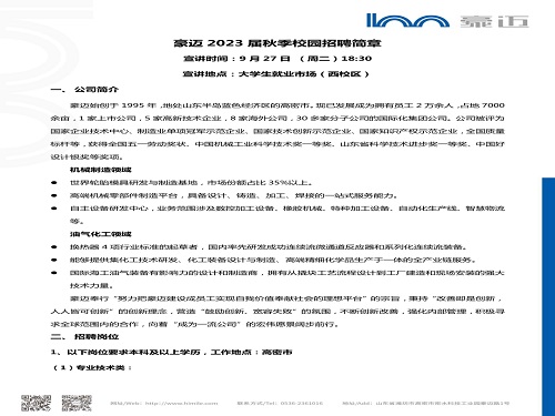 招聘简章|豪迈2023届秋季校园招聘简章