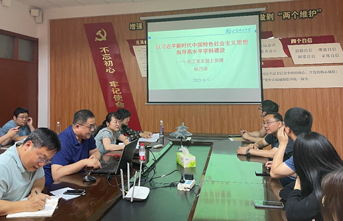 公司党委副书记、经理杨乃涛围绕“以习近平新时代中国特色社会主义思想指导高水平团队建设”,为化工系全体教工党员讲授党课。他从高水平团队队伍建设、高素质员工培养、高水平平台建设和高水平科研、服务社会能力的提升、大力推进国际交流等5个方面分别阐述了团队建设中的特色做法和主要成效,分析自身的优势和不足。杨乃涛明确指出,团队建设工作要在习近平新时代中国特色社会主义思想指引下,紧扣国家的战略需求,密切服务国民经济建设大政方针,与国家前进的方向和国家重大需求保持一致,要认真研究党的二十大报告对新型产业的要求,面向产业的“高端化、智能化、绿色化”开展工作,培养专业人才,更好服务地方经济建设。
