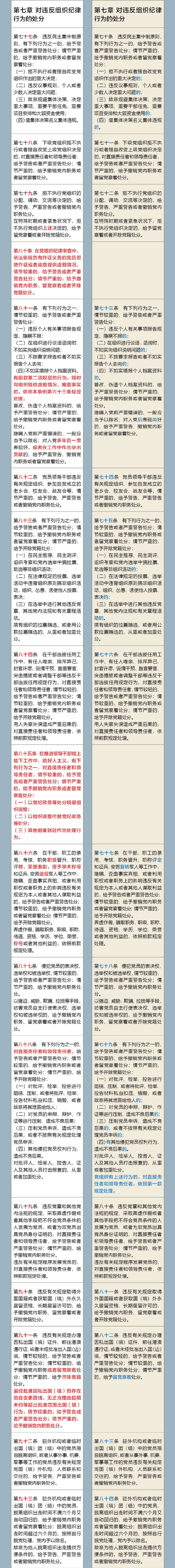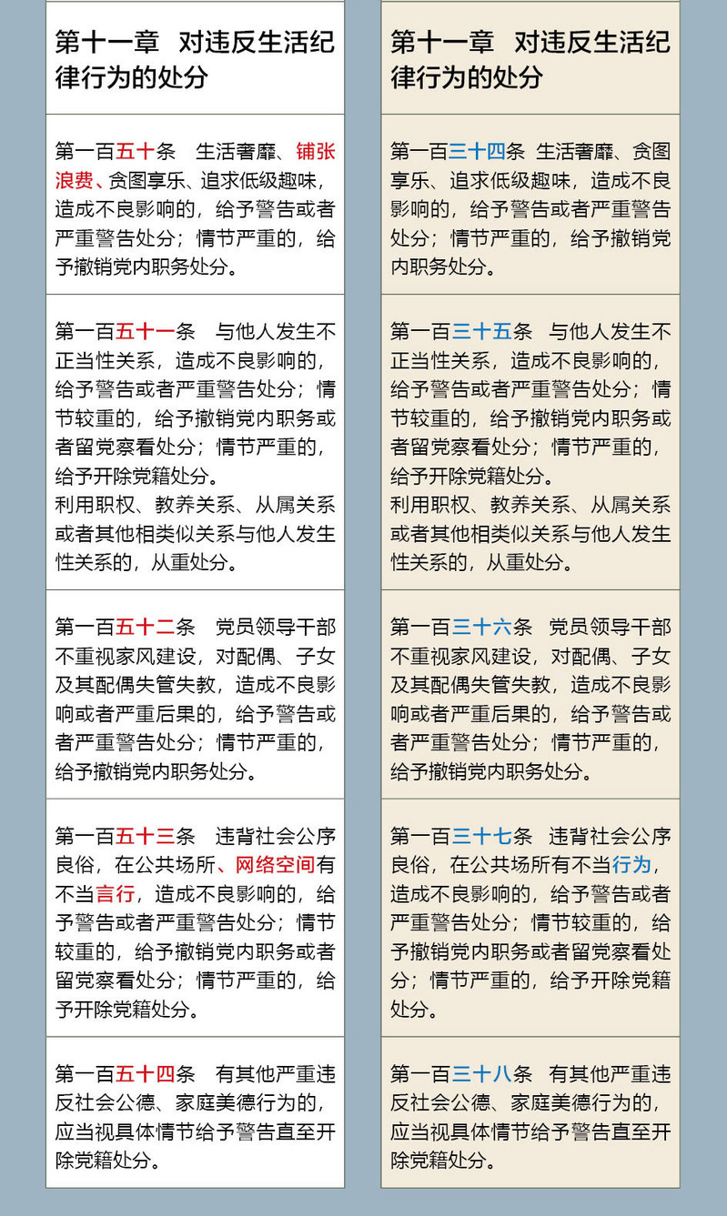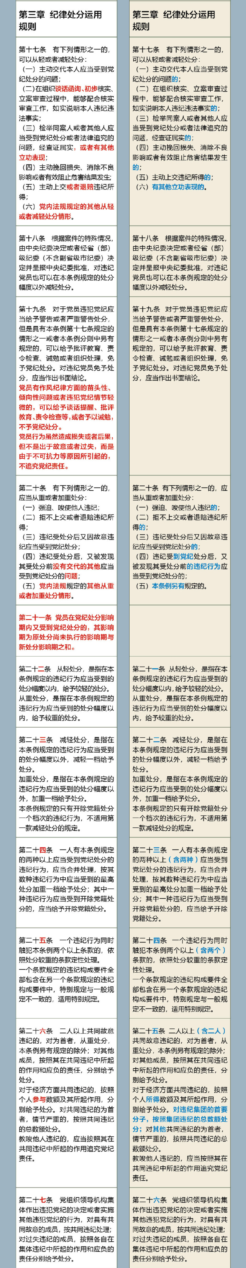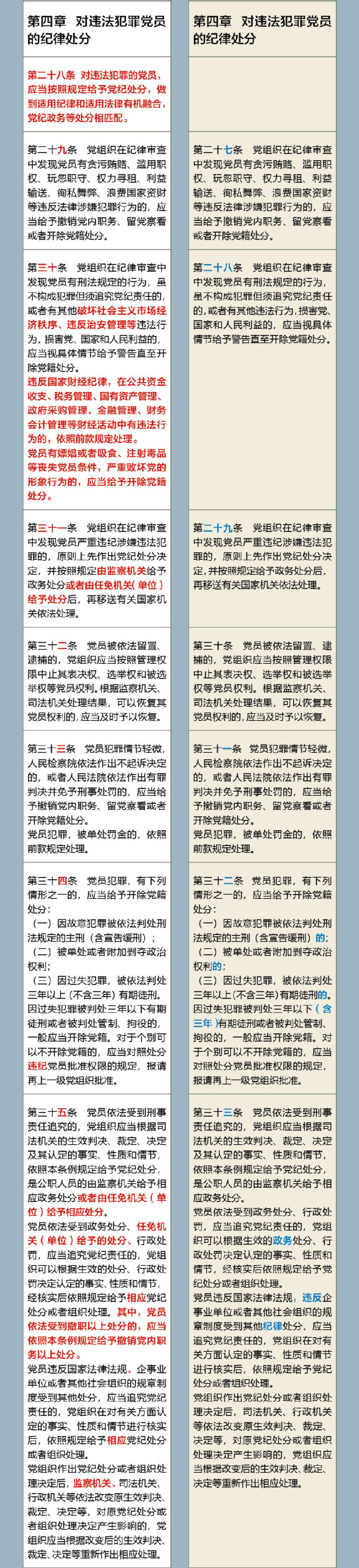 《中国共产党纪律处分条例》修订前后对照表