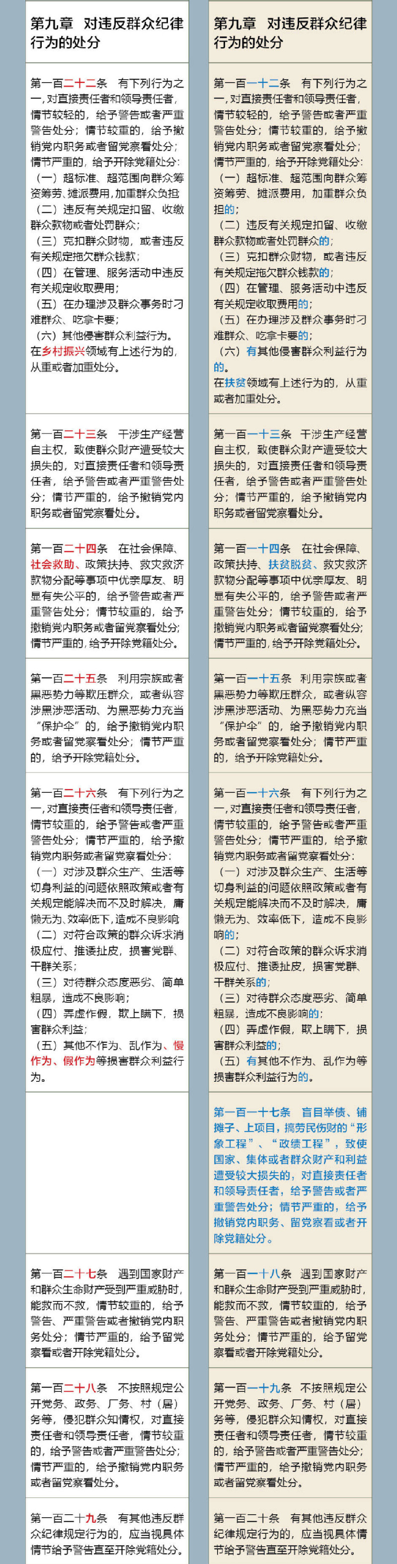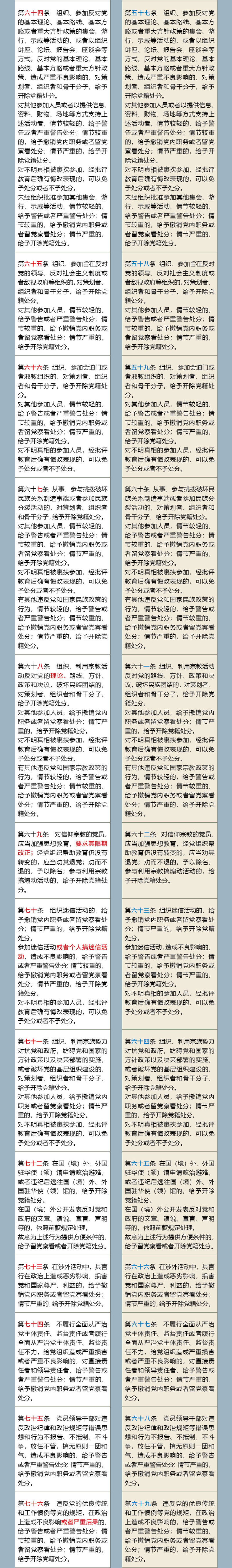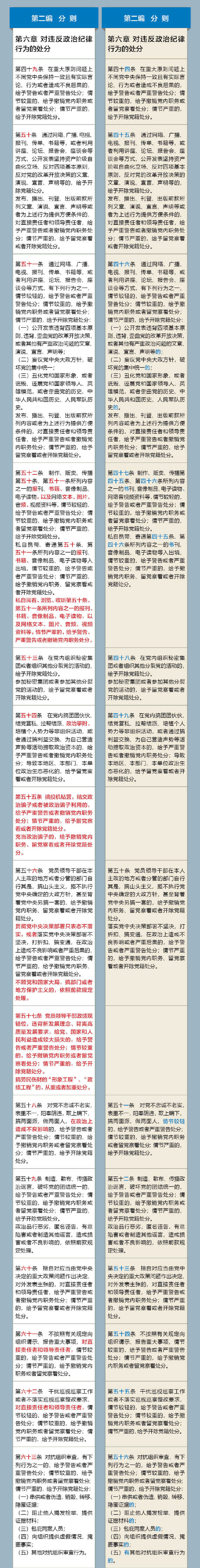 《中国共产党纪律处分条例》修订前后对照表