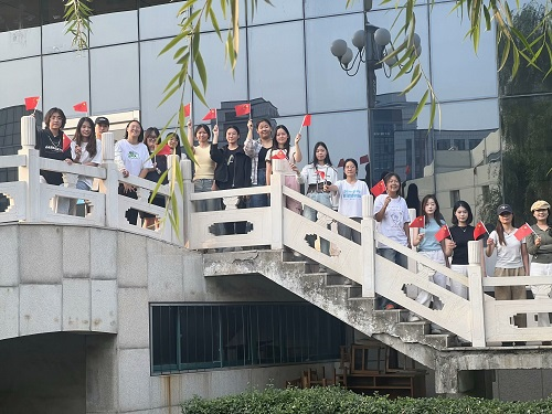 活动伊始,应化2201团支部的全体成员汇聚于老员工艺术中心广场,手持鲜艳的五星红旗,面庞洋溢着自豪与喜悦,准备记录下与国旗共舞的珍贵瞬间。待摄影设备调试完毕后,合影活动正式拉开帷幕。他们巧妙地排列成“75”字样,用这一独特而富有深意的方式,热烈庆祝祖国的华诞,深情地表达对祖国的祝福。