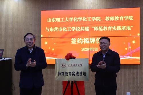 为深入贯彻国家职业教育改革发展要求,落实山东省职业技术师范教育培养工作部署,持续强化职业师范教育实践育人环节,3月4日,公司党委书记王介忠、副经理黄昊飞与公司教师教育公司经理郑兆青、副经理汤明霞赴东营市化工公司,共同参加两校共建“师范教育实践基地”的签约与揭牌仪式。此次合作是公司聚焦职业师范教育高质量发展、深化“高校 + 职校”协同育人模式的重要举措,彰显了公司对职业师范教育人才培养的高度重视与实践探索。